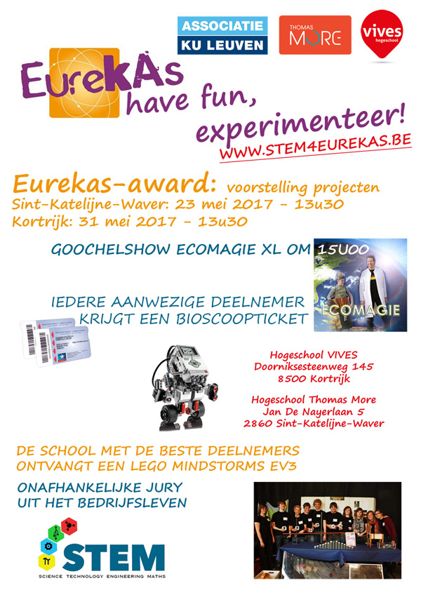 Op 23 mei 2017, tussen 13u30 en 16u00 is er de STEM4Eurekas-award bij de Hogeschool Thomas More te Sint-Katelijne-Waver.