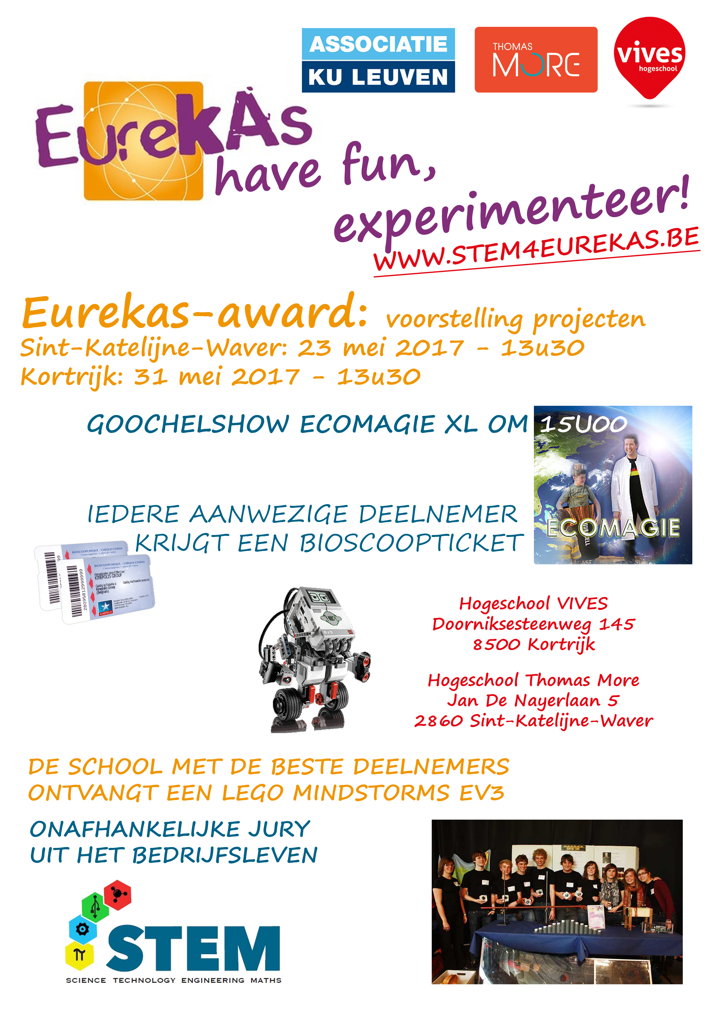 Op 31 mei 2017, tussen 13u30 en 16u00 is er de STEM4Eurekas-award bij de Hogeschool VIVES te Kortrijk.